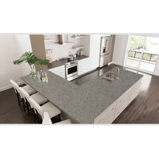 Il quarzo della serie Grey Sparkle è una pietra di quarzo artificiale appositamente trattata che si differenzia dalle altre serie per il suo aspetto più scintillante. Questo quarzo conferisce un senso di profondità e consistenza quando installato su pareti, pavimenti, piani di lavoro, ecc. Può essere utilizzato per creare splendidi elementi murali e paraschizzi per lavabi in bagni e cucine. Questo quarzo è estremamente efficace nelle aree a contatto con l'umidità grazie alle sue proprietà antibatteriche e di resistenza all'umidità.