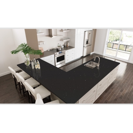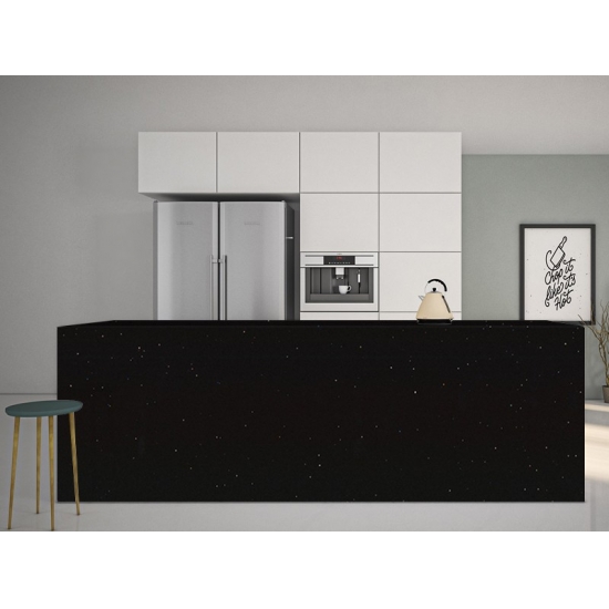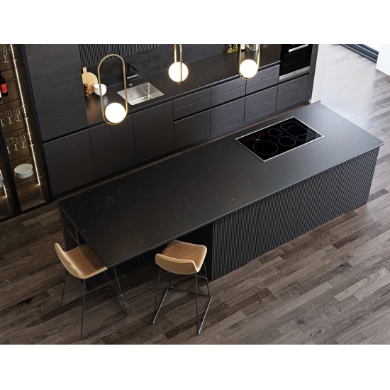 Sparkle Quartz INK PLANT è una pietra di quarzo artificiale appositamente trattata che si differenzia dalle altre serie per il suo aspetto più scintillante. Questi quarzi conferiscono un senso di profondità e consistenza quando installati su pareti, pavimenti, piani di lavoro ecc. Possono essere utilizzati per creare splendidi elementi murali e paraschizzi per lavabi in bagni e cucine. Questi quarzi sono estremamente adatti alle aree a contatto con l'umidità grazie alle loro proprietà antibatteriche e resistenti all'umidità.
