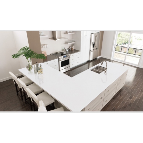 Sparkle Pure White Quartz è una pietra di quarzo artificiale appositamente trattata che si differenzia dalle altre serie per il suo aspetto più scintillante. Questi quarzi conferiscono un senso di profondità e texture quando installati su pareti, pavimenti, piani di lavoro, ecc. Possono essere utilizzati per creare splendidi elementi murali e paraschizzi per lavabi in bagni e cucine. Questi quarzi sono estremamente adatti alle aree a contatto con l'umidità grazie alle loro proprietà antibatteriche e resistenti all'umidità.