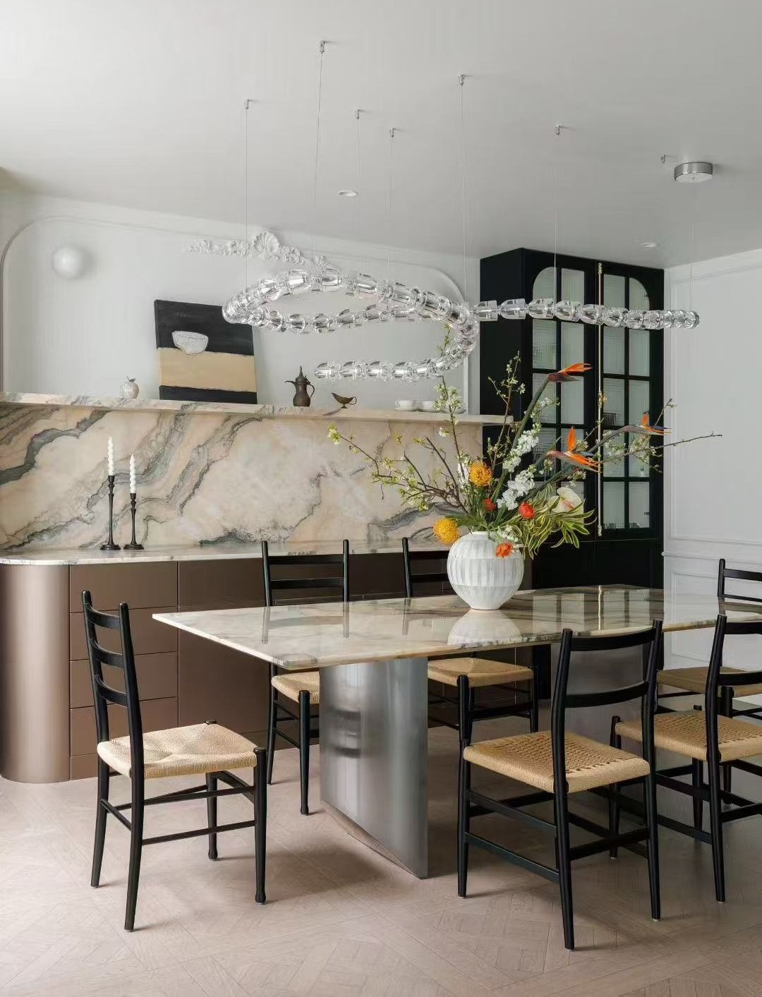 Marmo Portogallo Ondulare Rosso ha Un'esclusiva tonalità rosa fumé a bassa saturazione, con una texture delicatamente intrecciata che ricorda il bagliore del tramonto che accarezza delicatamente una galassia infinita. È al tempo stesso intricata e raffinata, con ogni linea che racconta una storia di armoniosa coesistenza tra natura e sogni.