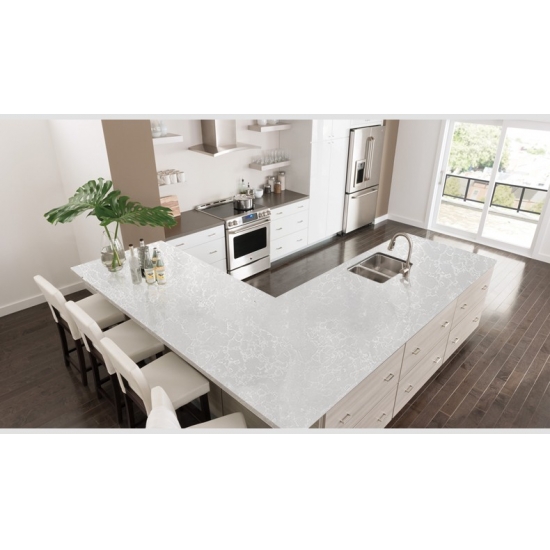 Lastra di quarzo marmo giada 4004 Presenta un aspetto elegante e fresco, con una morbida base ispirata alla giada, completata da delicate e fluide venature simili al marmo. La superficie emana un senso di armonia naturale, poiché le tonalità delicate e i motivi raffinati creano profondità mantenendo un aspetto pulito ed equilibrato. Le sottili variazioni nelle venature aggiungono interesse visivo senza sopraffare il design, rendendo questo quarzo senza tempo e versatile. Progettato per valorizzare un'ampia gamma di stili d'interni, conferisce un tocco calmo e sofisticato a cucine, bagni e raffinati spazi commerciali.