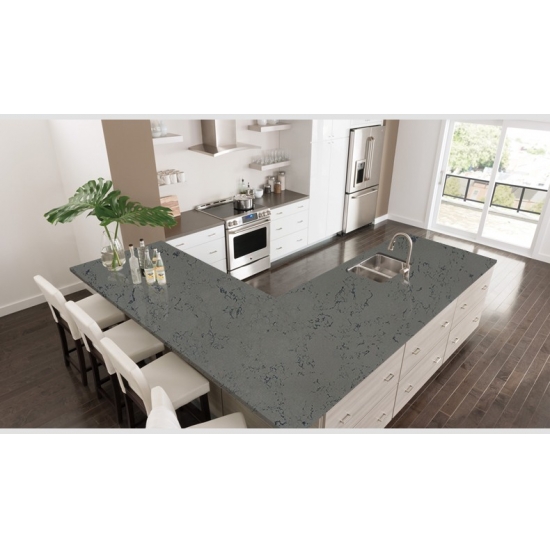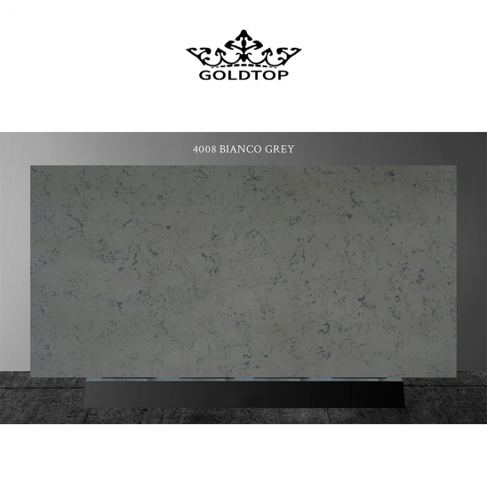 Lastra di quarzo marmoreo grigio bianco 4008 Presenta un aspetto raffinato ed elegante, con una morbida base bianca impreziosita da delicate venature grigie ispirate al marmo naturale. La superficie offre un'estetica pulita ed equilibrata, in cui il sottile movimento delle venature aggiunge profondità senza sovrastare il design generale. Le sue tonalità chiare e neutre creano una sensazione luminosa e ariosa, rendendola altamente versatile sia per interni moderni che classici. Questa lastra in quarzo conferisce una raffinatezza senza tempo e un lusso discreto a qualsiasi spazio residenziale o commerciale che valorizza.