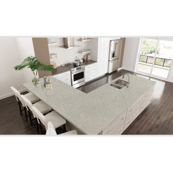 Lastra di quarzo marmoreo 4010 Presenta un aspetto raffinato ed elegante, con un delicato sfondo bianco accentuato da delicate venature grigie che scorrono dolcemente sulla superficie. I delicati motivi ispirati al marmo creano un'estetica calma e ariosa, conferendo un senso di equilibrio e movimento naturale. Questo quarzo emana un lusso discreto, rendendolo la scelta ideale per gli spazi che ricercano un look pulito, senza tempo e sofisticato.