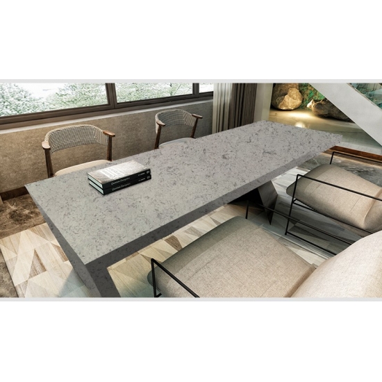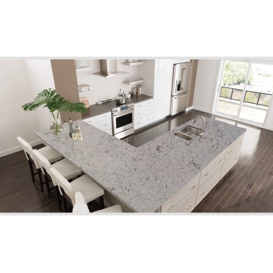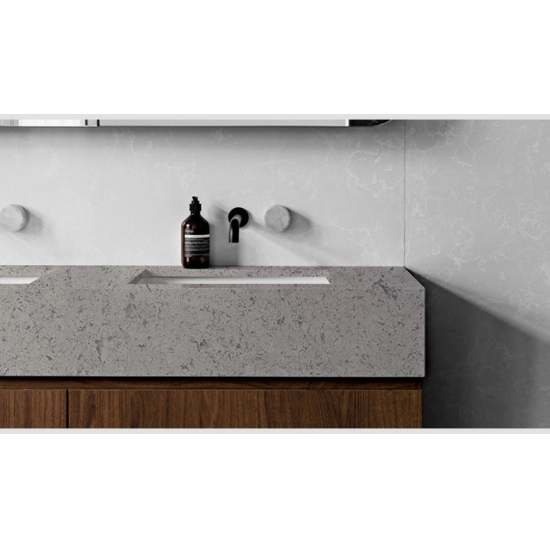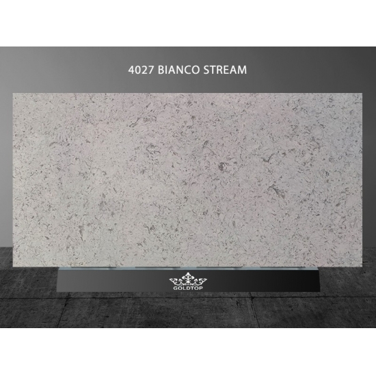 4027 Bianco Stream Marble Quartz Presenta un aspetto morbido ed elegante, con uno sfondo bianco brillante impreziosito da delicate e fluide venature grigie. La superficie irradia un senso di sobria raffinatezza, mentre le sottili venature aggiungono movimento e profondità naturali senza sopraffare lo spazio. Questo quarzo è progettato per creare un look raffinato e senza tempo, donando un tocco fresco e arioso a cucine, bagni e altri spazi interni.