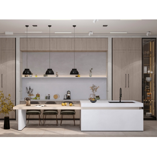 4036 Bianco organico Quartz presenta un design puro e minimalista con uno sfondo bianco morbido e pulito. La sua superficie liscia presenta venature delicate, quasi impercettibili, che creano una sensazione di serenità e armonia. L'eleganza discreta di Organic White lo rende la scelta perfetta per creare spazi tranquilli, che si tratti di cucine moderne, bagni o qualsiasi area che richieda un'atmosfera luminosa e rinfrescante. La sua semplicità trasmette un senso di calma, permettendogli di integrarsi perfettamente in un'ampia gamma di stili d'interni.