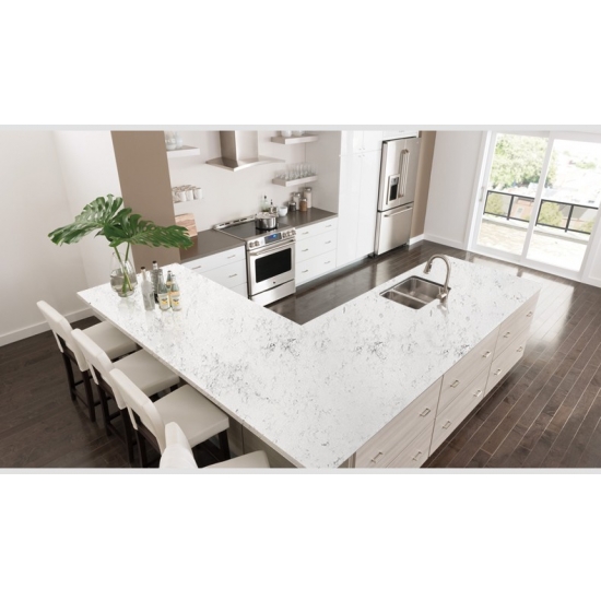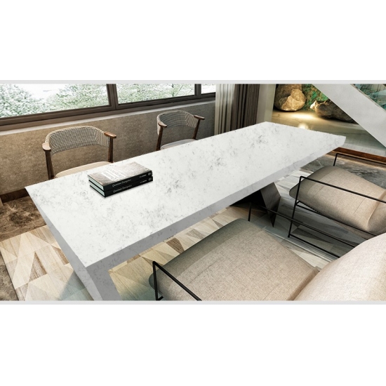 Lastra di quarzo marmo Attica 4039 Presenta un aspetto raffinato ed elegante, con il suo morbido sfondo bianco impreziosito da delicate venature grigie. La superficie presenta un'estetica pulita e senza tempo, in cui i delicati motivi marmorei scorrono naturalmente sulla lastra, creando un senso di equilibrio e armonia. Questo quarzo incarna un lusso discreto, rendendolo la scelta ideale sia per gli spazi contemporanei che per quelli classici, aggiungendo un tocco luminoso e sofisticato a qualsiasi interno che impreziosisca.