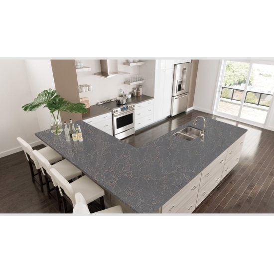 4041 Lastra di quarzo marmo Haldi Presenta un aspetto caldo ed elegante, con uno sfondo cremoso e delicato, impreziosito da delicate venature beige-dorate ispirate al marmo naturale. La superficie risulta raffinata ed equilibrata, mentre le sottili venature scorrono naturalmente lungo la lastra, creando un senso di armonia e lusso discreto. Questo quarzo è progettato per conferire calore e raffinatezza agli spazi, rendendolo la scelta ideale per piani di lavoro, isole e raffinati interni.