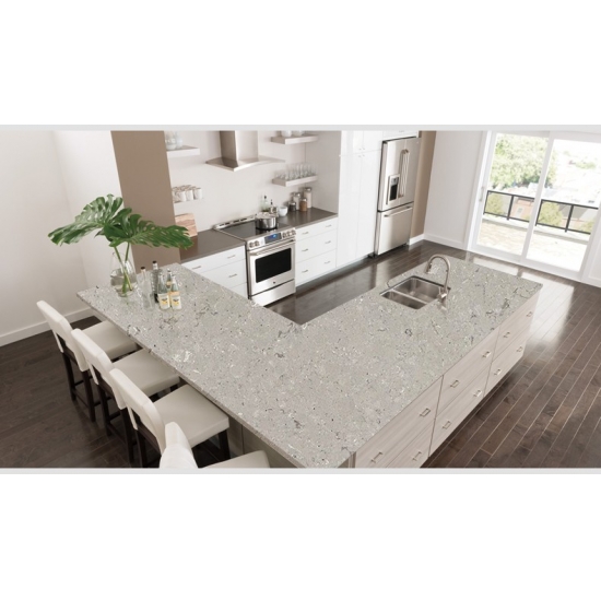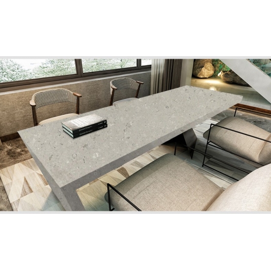 4042 Pietra Grigio Marmo Quarzo Presenta un aspetto raffinato ed elegante con il suo sfondo grigio scuro impreziosito da venature sottili e delicate. La superficie emana un carattere moderno e senza tempo, mentre le delicate tonalità di grigio creano un effetto visivo calmo ed equilibrato con una profondità naturale. Questo quarzo è progettato per conferire un lusso discreto, rendendolo la scelta ideale per cucine, bagni e interni sofisticati in stile contemporaneo.