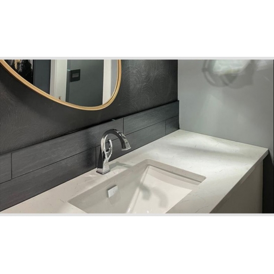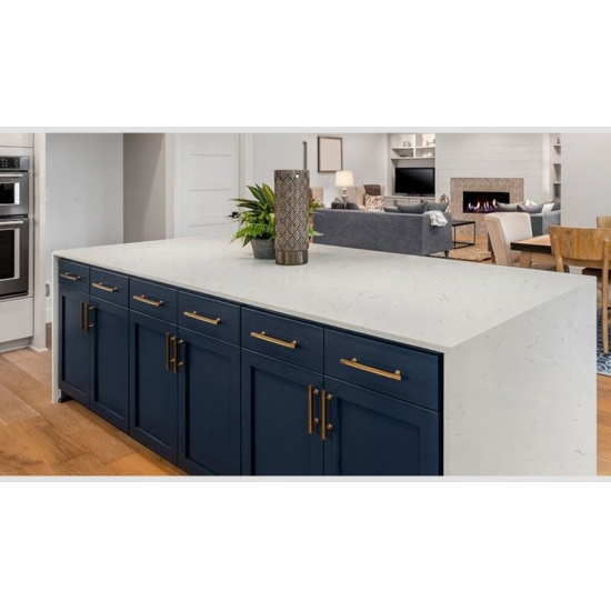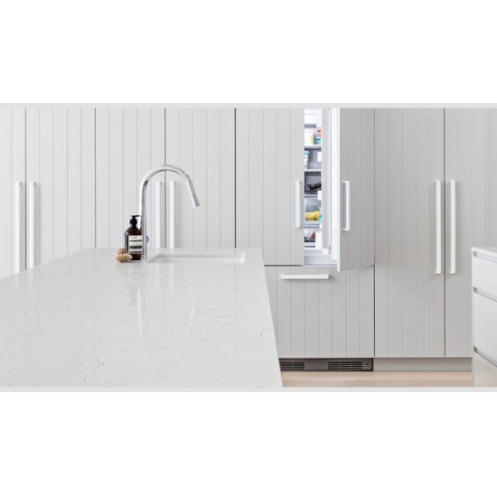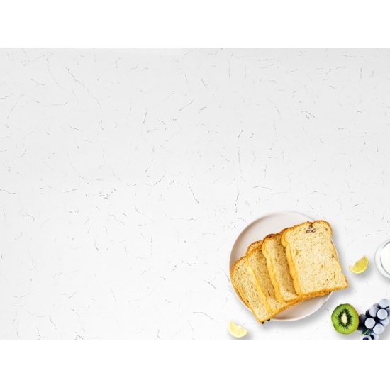 4047 Carrara Thread Marmo Quarzo Presenta un aspetto classico ed elegante, con il suo morbido sfondo bianco delicatamente venato da sottili fili grigi. La superficie emana una raffinatezza senza tempo, mentre le delicate venature creano movimento e profondità naturali senza sopraffare lo spazio. Questa lastra di quarzo è progettata per valorizzare gli interni con una bellezza raffinata e sobria, donando un senso di calma e lusso a piani di lavoro, vanità e altre applicazioni.