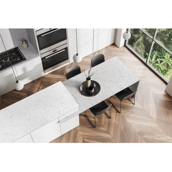 Il quarzo Caesar Zero Silicon 4051 bianco organico presenta una superficie bianca pura e una composizione ecologica senza silicio, garantendo un utilizzo atossico e sicuro. I suoi vantaggi includono elevata durata, facile manutenzione e un'estetica moderna e minimalista, che lo rendono ideale per i piani di lavoro di cucine e bagni in case sane.