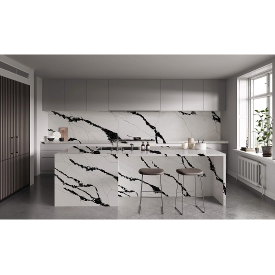 Questo quarzo è perfetto per un'ampia gamma di applicazioni, dai piani di lavoro alle isole della cucina, fino alle pareti e ai mobili lavabo. Le sue venature decise aggiungono carattere e raffinatezza, rendendolo un punto focale in qualsiasi design. Che sia abbinato a eleganti finiture metalliche o a calde tonalità del legno, il quarzo Calacatta Fiorina 5125 esalta l'eleganza di qualsiasi spazio.