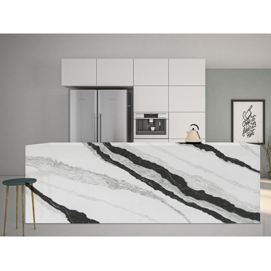 Il quarzo Calacatta è realizzato con componenti naturali, ma è resistente, durevole e a bassa porosità, il che rende i prodotti in quarzo praticamente esenti da usura. Resistenza, comfort e uniformità del disegno sono le ragioni principali della crescente popolarità del quarzo. Il quarzo è costituito al 90% da pietra naturale, il resto è costituito da colla, coloranti e additivi che ne migliorano le proprietà tecniche. La permeabilità all'acqua e la resistenza alle macchie completano la bellezza del quarzo.