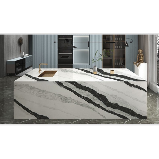 La lastra di quarzo bianco Panda 5008 presenta un'estetica pulita e moderna, con una base bianca brillante delicatamente esaltata da delicate venature grigie. Il delicato gioco tra le sottili striature e lo sfondo aggiunge un discreto senso di profondità e movimento. Questa lastra offre un'eleganza senza tempo e versatile, ideale per creare un'atmosfera serena e sofisticata in qualsiasi spazio contemporaneo.