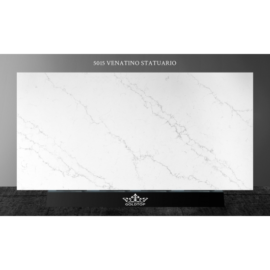 Il quarzo della serie Calacatta è attualmente il prodotto in quarzo più popolare. Raffinato e unico, il quarzo Calacatta stupisce i sensi con i suoi bianchi puri e le sue suggestive venature effetto marmo in tutta la massa. Con la sua splendida e ampia venatura e la sensazione di lusso, questo quarzo offre l'aspetto naturale del marmo Calacatta, ma senza nessuno degli svantaggi dei piani di lavoro in marmo. Il quarzo Calacatta è un piano di lavoro molto resistente, antimacchia e antigraffio, il che lo rende anche una scelta molto pratica per piani di lavoro per cucine e bagni, scale, davanzali, mobili su misura, applicazioni per pareti e pavimenti interni ed esterni, decorazioni con getto d'acqua e altri progetti di design.