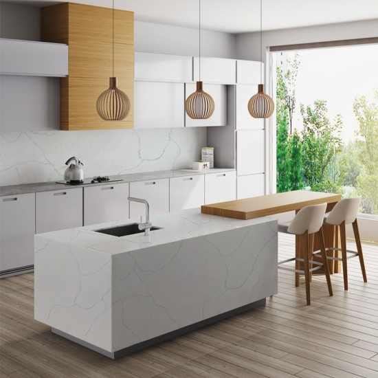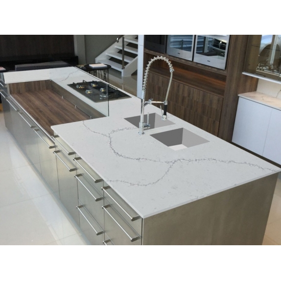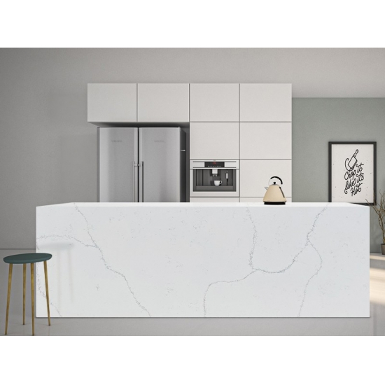 Il quarzo Calacatta è realizzato con componenti naturali, ma è resistente, durevole e a bassa porosità, il che rende i prodotti in quarzo praticamente esenti da usura. Resistenza, comfort e uniformità del disegno sono le ragioni principali della crescente popolarità del quarzo. Il quarzo è costituito al 90% da pietra naturale, il resto è costituito da colla, coloranti e additivi che ne migliorano le proprietà tecniche. La permeabilità all'acqua e la resistenza alle macchie completano la bellezza del quarzo.