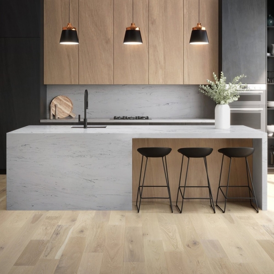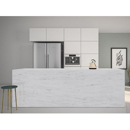 Squisito e unico, il quarzo Calacatta incanta i sensi con i suoi bianchi puri e le sue suggestive venature effetto marmo in tutta la massa. Con la sua splendida e suggestiva venatura larga e la sensazione di lusso, questo quarzo offre l'aspetto naturale del marmo Calacatta, ma senza nessuno degli svantaggi dei piani di lavoro in marmo. Il quarzo Calacatta è un piano di lavoro molto resistente, antimacchia e antigraffio, il che lo rende anche una scelta molto pratica per piani di lavoro per cucine e bagni, scale, davanzali, mobili su misura, applicazioni per pareti e pavimenti interni ed esterni, decorazioni con getto d'acqua e altri progetti di design.