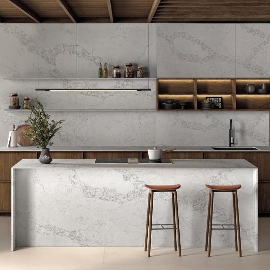 Questo quarzo è perfetto per un'ampia gamma di applicazioni, dai piani di lavoro alle isole della cucina, fino alle pareti e ai mobili lavabo. Le sue venature decise aggiungono carattere e raffinatezza, rendendolo un punto focale in qualsiasi design. Che sia abbinato a eleganti finiture metalliche o a calde tonalità del legno, il quarzo Calacatta Fiorina 5125 esalta l'eleganza di qualsiasi spazio.
