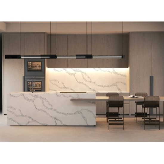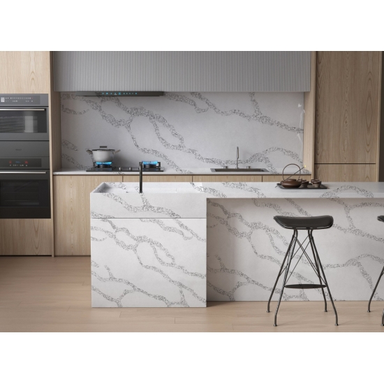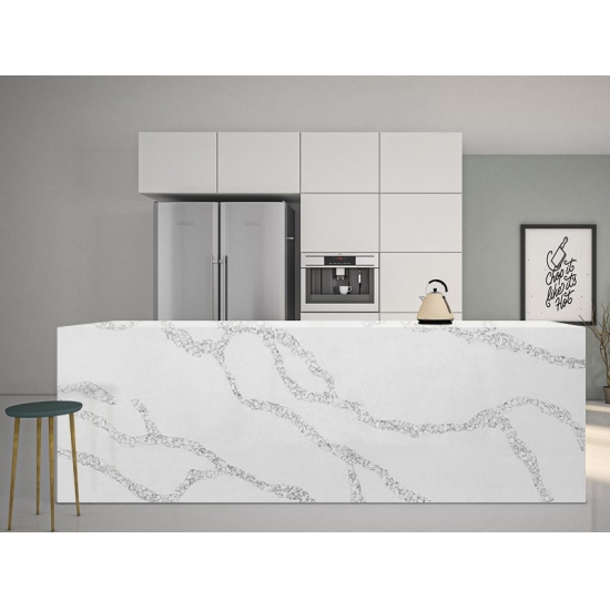5031 Calacatta Roma è una pietra artificiale di alta qualità, progettata per emulare l'aspetto lussuoso del classico marmo Calacatta. Presenta uno sfondo bianco brillante con venature grigie o dorate, che creano un aspetto sofisticato ed elegante. Questa pietra artificiale offre una superficie levigata e levigata, resistente e di facile manutenzione. Ideale per applicazioni come piani di lavoro, paraschizzi, pavimenti e rivestimenti murali.