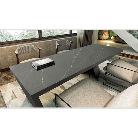 5128 Fior Bosco Quartz presenta una sofisticata tela grigia, elegantemente tratteggiata da delicate venature organiche che evocano la serena bellezza di un paesaggio boschivo. Ogni lastra presenta una composizione unica di profondità tonale e movimento fluido, conferendo un'atmosfera moderna e tranquilla a qualsiasi interno. La sua superficie luminosa esalta la riflessione della luce, creando un flusso visivo dinamico, perfetto per piani di lavoro da cucina, mobili da bagno e pareti decorative.