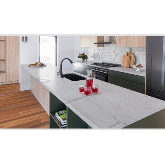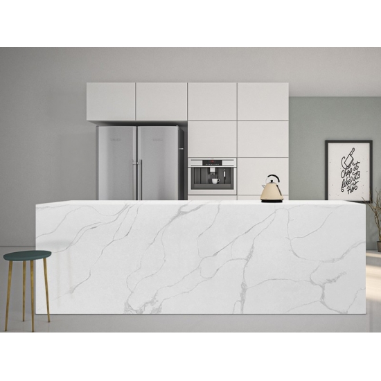 Il quarzo Calacatta è realizzato con componenti naturali, ma è resistente, durevole e a bassa porosità, il che rende i prodotti in quarzo praticamente esenti da usura. Resistenza, comfort e uniformità del disegno sono le ragioni principali della crescente popolarità del quarzo. Il quarzo è costituito al 90% da pietra naturale, il resto è costituito da colla, coloranti e additivi che ne migliorano le proprietà tecniche. La permeabilità all'acqua e la resistenza alle macchie completano la bellezza del quarzo.