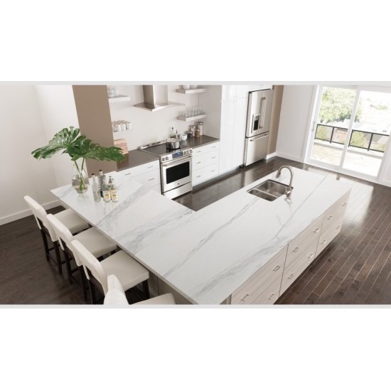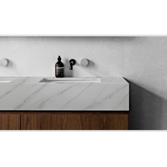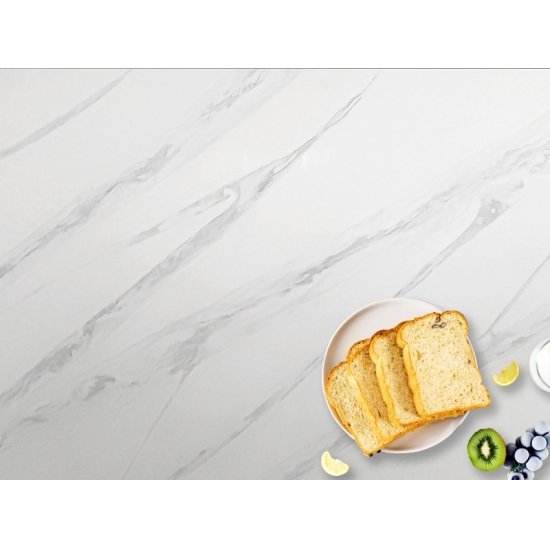 La lastra di quarzo Volakas 5044 presenta una base bianca pura e luminosa, splendidamente valorizzata da morbide e delicate venature grigie. I motivi delicati e fluidi creano un senso di serena eleganza e un fascino senza tempo. Questa lastra offre un perfetto connubio tra bellezza classica e moderna resistenza, conferendo senza sforzo un'atmosfera luminosa e lussuosa a qualsiasi spazio interno.