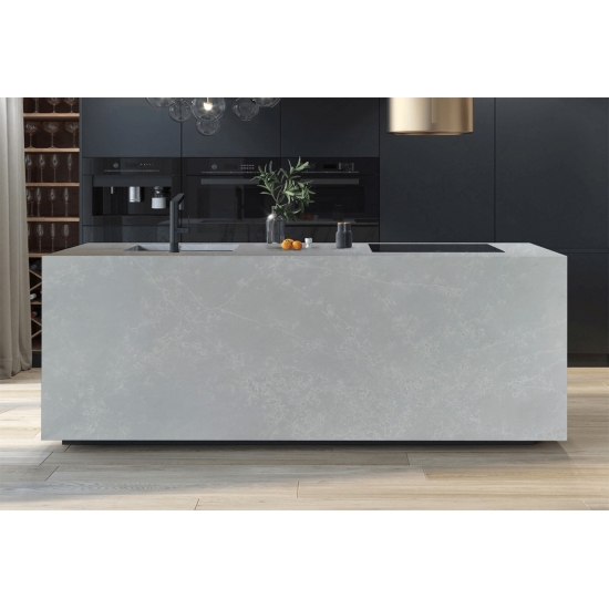 5128 Fior Bosco Quartz presenta una sofisticata tela grigia, elegantemente tratteggiata da delicate venature organiche che evocano la serena bellezza di un paesaggio boschivo. Ogni lastra presenta una composizione unica di profondità tonale e movimento fluido, conferendo un'atmosfera moderna e tranquilla a qualsiasi interno. La sua superficie luminosa esalta la riflessione della luce, creando un flusso visivo dinamico, perfetto per piani di lavoro da cucina, mobili da bagno e pareti decorative.