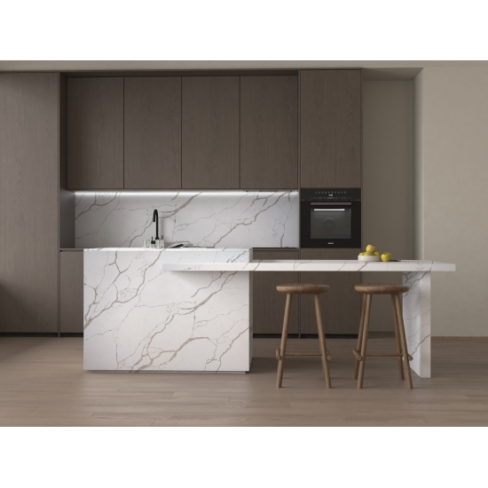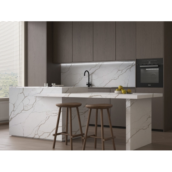 Questo quarzo è perfetto per un'ampia gamma di applicazioni, dai piani di lavoro alle isole della cucina, fino alle pareti e ai mobili lavabo. Le sue venature decise aggiungono carattere e raffinatezza, rendendolo un punto focale in qualsiasi design. Che sia abbinato a eleganti finiture metalliche o a calde tonalità del legno, il quarzo Calacatta Fiorina 5125 esalta l'eleganza di qualsiasi spazio.