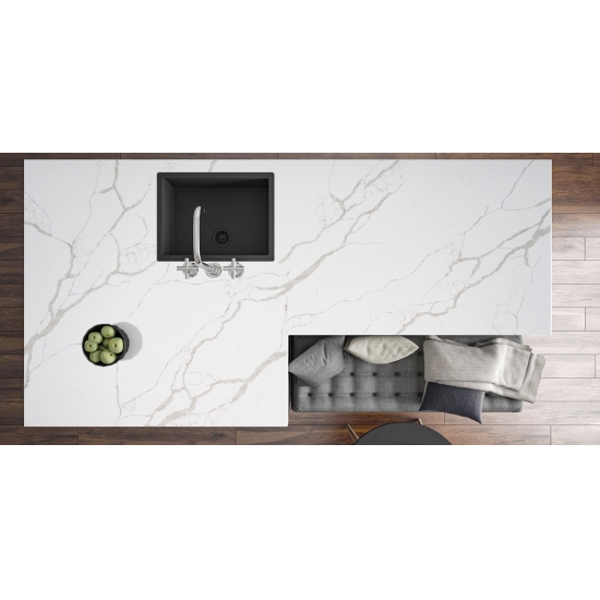 Il quarzo Calacatta è realizzato con componenti naturali, ma è resistente, durevole e a bassa porosità, il che rende i prodotti in quarzo praticamente esenti da usura. Resistenza, comfort e uniformità del disegno sono le ragioni principali della crescente popolarità del quarzo. Il quarzo è costituito al 90% da pietra naturale, il resto è costituito da colla, coloranti e additivi che ne migliorano le proprietà tecniche. La permeabilità all'acqua e la resistenza alle macchie completano la bellezza del quarzo.