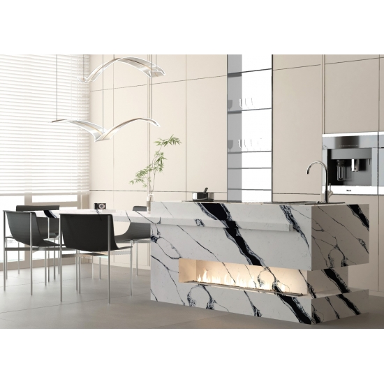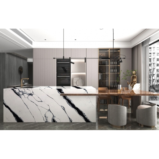 Questo quarzo è perfetto per un'ampia gamma di applicazioni, dai piani di lavoro alle isole della cucina, fino alle pareti e ai mobili lavabo. Le sue venature decise aggiungono carattere e raffinatezza, rendendolo un punto focale in qualsiasi design. Che sia abbinato a eleganti finiture metalliche o a calde tonalità del legno, il quarzo Calacatta Fiorina 5125 esalta l'eleganza di qualsiasi spazio.