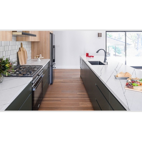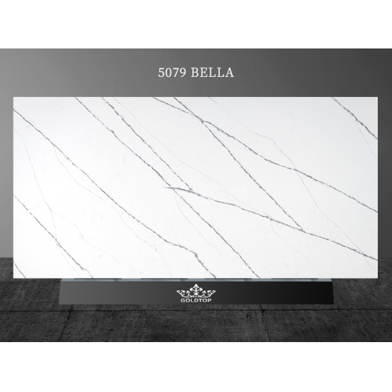 La lastra di quarzo Bella 5079 presenta una calda e morbida tela bianca, delicatamente percorsa da delicate venature grigie. Il flusso sottile e organico aggiunge profondità e movimento sereno, creando un'atmosfera di rilassata eleganza. Questa lastra versatile fonde un fascino senza tempo con una semplicità moderna, perfetta per infondere a qualsiasi spazio uno stile calmo e sofisticato.