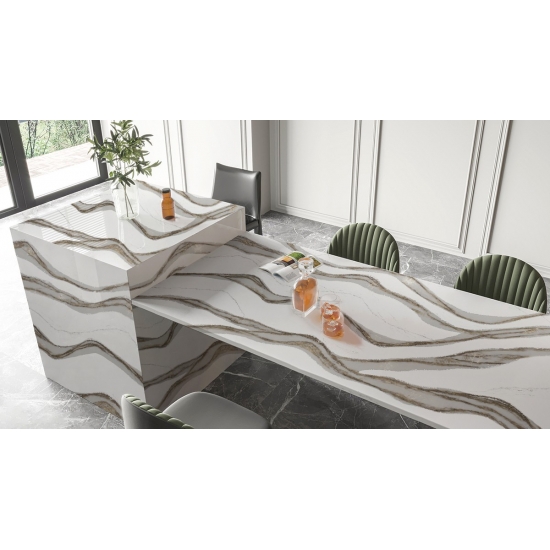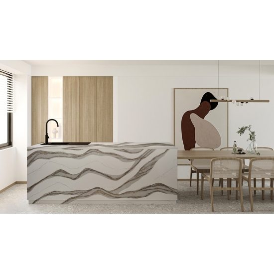 Il quarzo 5081 Skara Delicato è una pietra sofisticata che emana eleganza con il suo delicato sfondo bianco, impreziosito da sottili venature grigie. Questo design si ispira alla bellezza senza tempo del marmo naturale, ma offre la maggiore durata e la bassa manutenzione del quarzo. Le delicate venature scorrono senza soluzione di continuità sulla superficie, aggiungendo un tocco di raffinatezza a qualsiasi spazio.