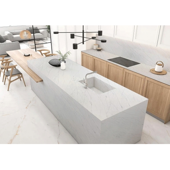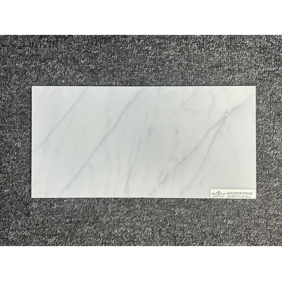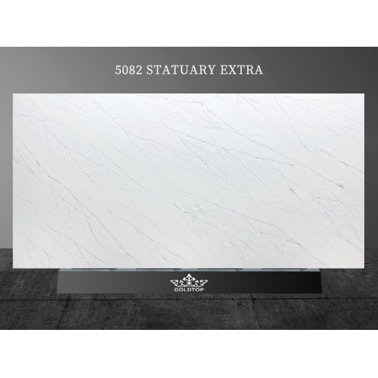 Lastra di quarzo Calacatta Statuary Extra 5082: un'aggiunta preziosa a qualsiasi casa che desideri un look sofisticato e senza tempo. La lastra incarna l'eleganza del marmo naturale con le sue venature delicate e la texture lussuosa. Il quarzo Calacatta Statuary Extra è perfetto per creare un punto focale mozzafiato in qualsiasi stanza, sia che venga utilizzato come piano di lavoro per la cucina, mobiletto per il bagno o cornice per il camino.