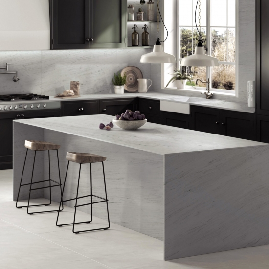 Squisito e unico, il quarzo Calacatta incanta i sensi con i suoi bianchi puri e le sue suggestive venature effetto marmo in tutta la massa. Con la sua splendida e suggestiva venatura larga e la sensazione di lusso, questo quarzo offre l'aspetto naturale del marmo Calacatta, ma senza nessuno degli svantaggi dei piani di lavoro in marmo. Il quarzo Calacatta è un piano di lavoro molto resistente, antimacchia e antigraffio, il che lo rende anche una scelta molto pratica per piani di lavoro per cucine e bagni, scale, davanzali, mobili su misura, applicazioni per pareti e pavimenti interni ed esterni, decorazioni con getto d'acqua e altri progetti di design.