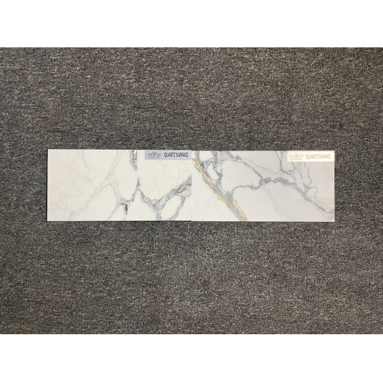 Il quarzo della serie Calacatta è attualmente il prodotto in quarzo più popolare. Raffinato e unico, il quarzo Calacatta stupisce i sensi con i suoi bianchi puri e le sue suggestive venature effetto marmo in tutta la massa. Con la sua splendida e ampia venatura e la sensazione di lusso, questo quarzo offre l'aspetto naturale del marmo Calacatta, ma senza nessuno degli svantaggi dei piani di lavoro in marmo. Il quarzo Calacatta è un piano di lavoro molto resistente, antimacchia e antigraffio, il che lo rende anche una scelta molto pratica per piani di lavoro di cucine e bagni, scale, davanzali, mobili su misura, applicazioni per pareti e pavimenti interni ed esterni, decorazioni con getto d'acqua e altri progetti di design.