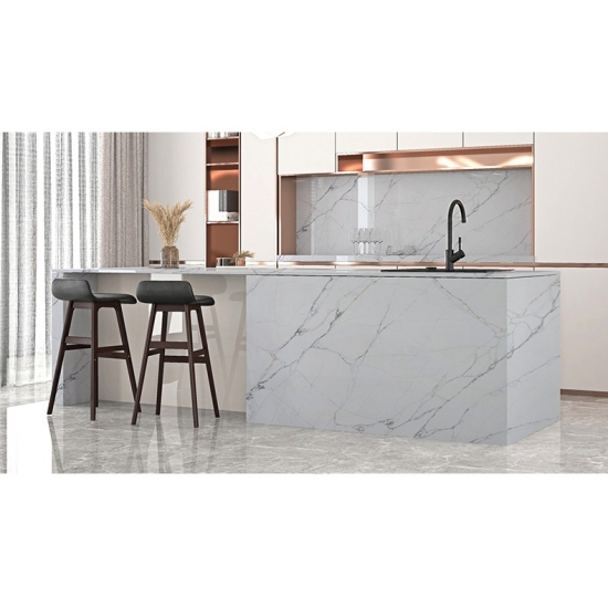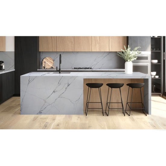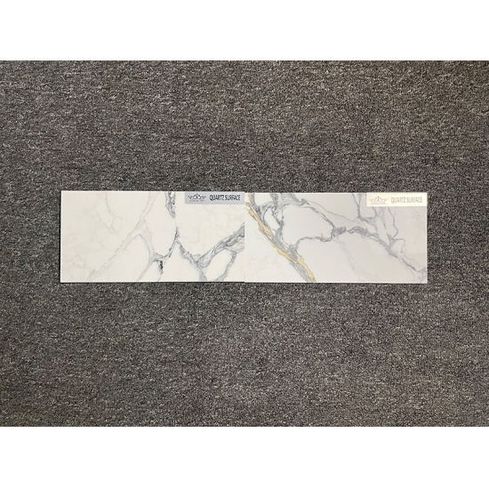 50 Square MetersSquisito e unico, il quarzo Calacatta incanta i sensi con i suoi bianchi puri e le sue suggestive venature effetto marmo in tutta la massa. Con la sua splendida e suggestiva venatura larga e la sensazione di lusso, questo quarzo offre l'aspetto naturale del marmo Calacatta, ma senza nessuno degli svantaggi dei piani di lavoro in marmo. Il quarzo Calacatta è un piano di lavoro molto resistente, antimacchia e antigraffio, il che lo rende anche una scelta molto pratica per piani di lavoro per cucine e bagni, scale, davanzali, mobili su misura, applicazioni per pareti e pavimenti interni ed esterni, decorazioni con getto d'acqua e altri progetti di design.
