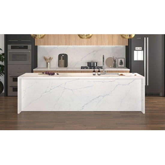 Calacatta Milas Quartz è un capolavoro di eleganza ingegneristica, che cattura l'essenza del pregiato marmo naturale. Presenta una calda e invitante tela bianca, elegantemente percorsa da delicate venature grigie. Questa lussuosa composizione racchiude l'intramontabile drammaticità e la sofisticata bellezza del marmo, perfetta per creare un punto focale in qualsiasi ambiente. Disponibile per piani di lavoro, paraschizzi e pareti decorative, porta un armonioso mix di ispirazione classica e lusso contemporaneo in cucine, bagni e non solo.