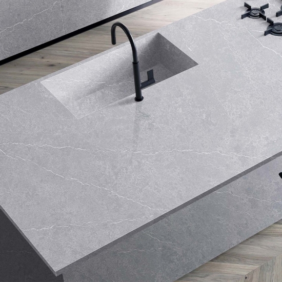 Il quarzo cemento è un materiale di quarzo artificiale appositamente trattato. Simile a una finitura opaca, la finitura cemento altera leggermente il colore del quarzo rispetto alla classica finitura lucida. Questa finitura è anche chiamata "spazzolata" quando si fa riferimento al granito.