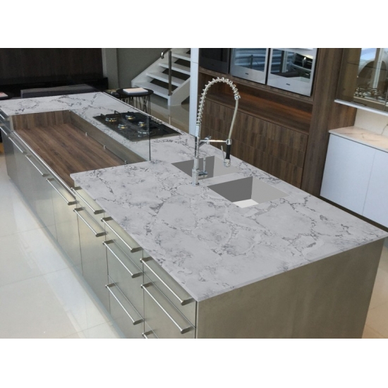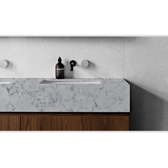 Il quarzo cemento è un materiale di quarzo artificiale appositamente trattato. Simile a una finitura opaca, la finitura cemento altera leggermente il colore del quarzo rispetto alla classica finitura lucida. Questa finitura è anche chiamata "spazzolata" quando si fa riferimento al granito.
