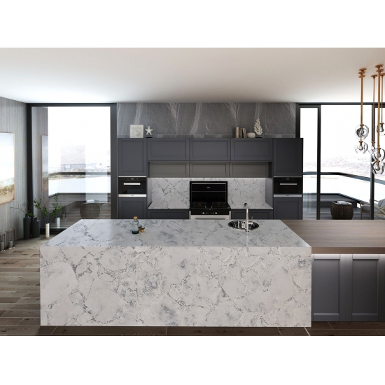 6004 Horizon Grey CEMENTO QUARZO Il quarzo cemento è un materiale di quarzo artificiale appositamente trattato. Simile a una finitura opaca, la finitura cemento altera leggermente il colore del quarzo rispetto alla classica finitura lucida. Questa finitura è anche chiamata "spazzolata" quando si fa riferimento al granito.