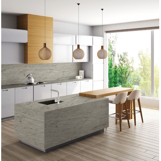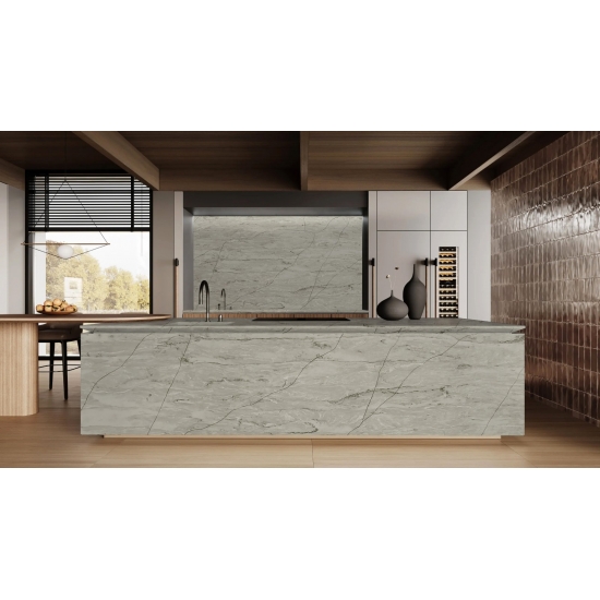 4052 Ariston Grey ha una tonalità di grigio semplice ma elegante, che presenta un'estetica sobria e moderna. Questo quarzo è estremamente resistente a graffi, macchie e calore, il che lo rende la scelta ideale per aree ad alto utilizzo come i piani di lavoro della cucina e del bagno. Grazie alla sua struttura compatta, il quarzo Ariston Grey è altamente resistente all'acqua e facile da pulire, mantenendo la sua bellezza a lungo.