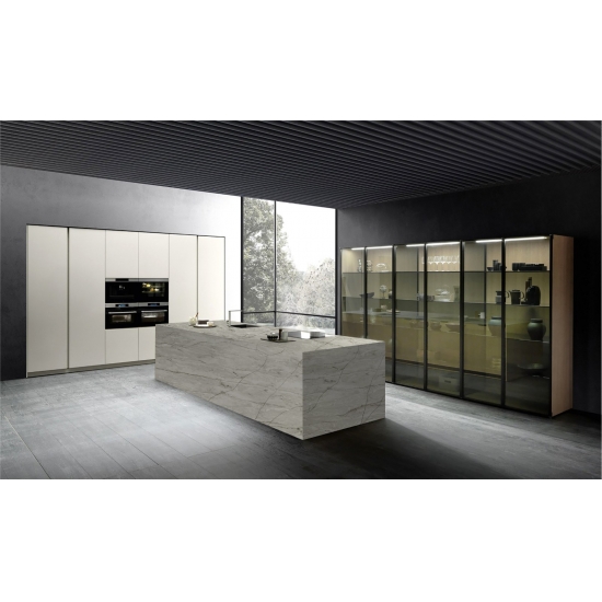 Il quarzo 5121 Milan Extra Calacatta Gold sfoggia un aspetto audace e spettacolare con il suo sfondo nero intenso intervallato da fini particelle scintillanti. La superficie trasuda raffinatezza, poiché i toni scuri sono contrastati da sottili riflessi che catturano la luce, creando un senso di profondità e movimento. Questo quarzo è progettato per distinguersi, aggiungendo un tocco di opulenza a qualsiasi spazio in cui si inserisce.