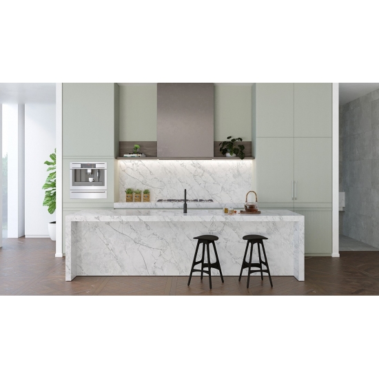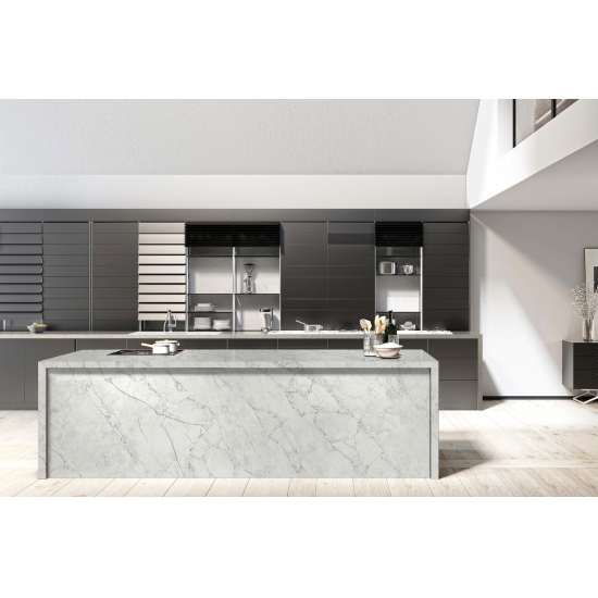 Il quarzo cemento è un materiale di quarzo artificiale appositamente trattato. Simile a una finitura opaca, la finitura cemento altera leggermente il colore del quarzo rispetto alla classica finitura lucida. Questa finitura è anche chiamata "spazzolata" quando si fa riferimento al granito.