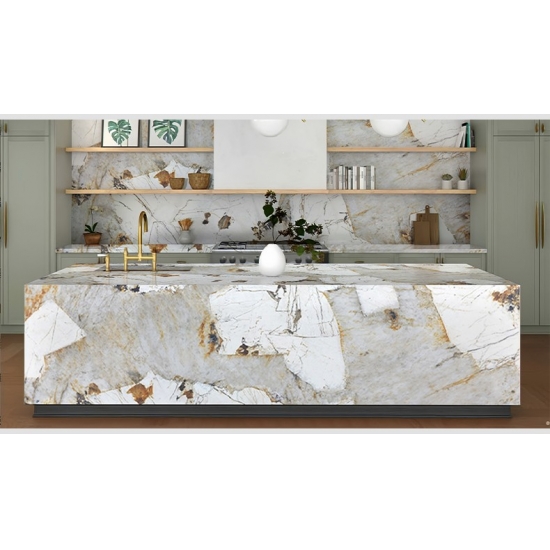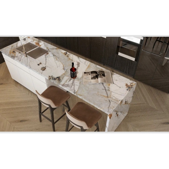 Sperimenta la libertà di progettazione con la lastra Pandora Printed Quartz. Grazie alla stampa 3D, le venature profonde e uniformi eliminano le interruzioni visive su tagli e bordi. Questo permette all'estetica naturale del marmo di fluire ininterrottamente sulle superfici, consentendo applicazioni più creative e commercialmente valide sia in progetti residenziali che contract.