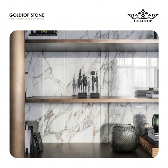 Controsoffitti in lastre di quarzite grigia Calacatta, è una quarzite molto popolare, supportiamo la lavorazione e la personalizzazione, consigliamo lastre di bell'aspetto in base al tuo design