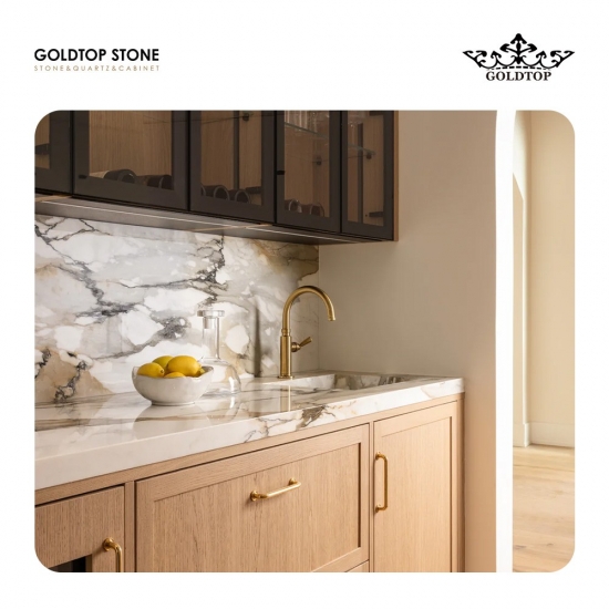 Il 3/4" (2 cm) lucidato Calacatta Macchia Vecchia Marmo S laboratorio Cattura e riflette la luce, esaltando brillantemente le venature intricate e i colori intensi del Calacatta Macchia Vecchia. Questo lo rende ideale per piani di lavoro di grande impatto, pareti decorative e altre applicazioni d'interni di lusso.