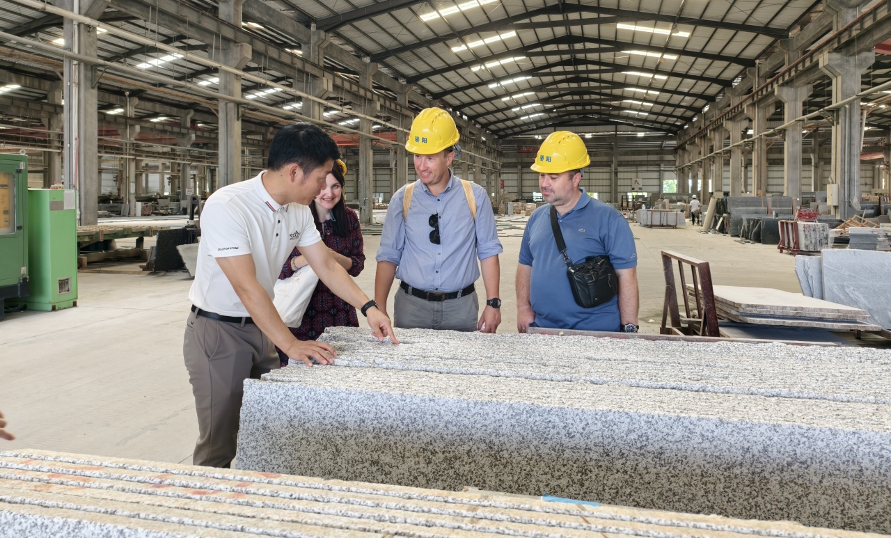 Durante il tour, gli ospiti hanno assistito all'intero flusso di lavoro produttivo, dalla selezione della pietra grezza al taglio, alla lucidatura e alla finitura. Hanno sperimentato in prima persona come la nostra combinazione di attrezzature moderne, abilità artigianale e rigorosi controlli di qualità garantisca precisione, coerenza e finiture di alta qualità in ogni pezzo. La visita ha evidenziato la forza delle nostre attività e il nostro impegno per l'eccellenza. pietra naturale produzione.