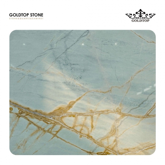 Marmo Palissandro Reale Presenta una base azzurra chiara e rinfrescante, attraversata da linee dorate fluide, mentre calde venature marroni si diffondono lungo i bordi. Giocando con luci e ombre, le macchie dorate brillano come la luce delle stelle nella notte, esaltando uno stile raffinato e lussuoso.